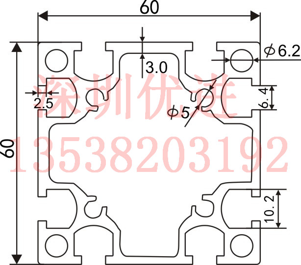 產(chǎn)品名稱:YU6060鋁型材