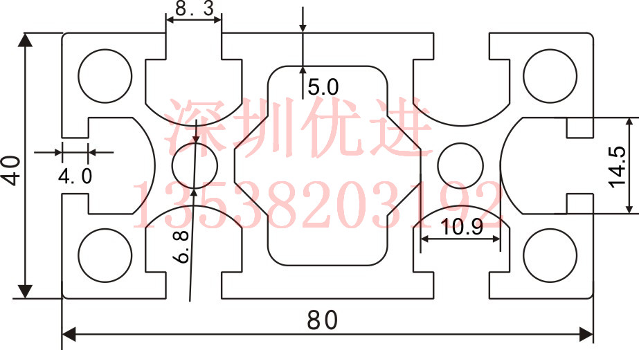 產(chǎn)品名稱:YU4080鋁型材